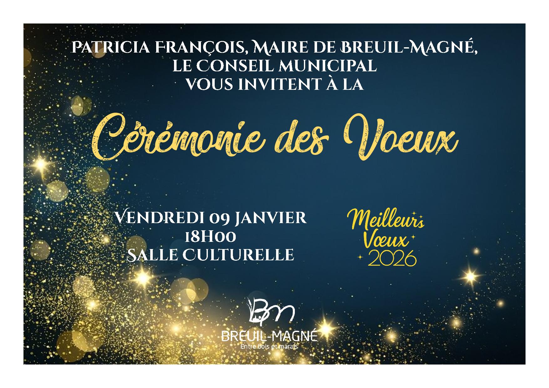 Actualités de Breuil-Magné VOEUX 2026 Vendredi 09 janvier 2026, 18h00, salle Culturelle BONNES FETES NOUVEAU SALON DE COIFFURE BILAN TELETHON 2025 FRANCE SERVICES NOUVEAU COMMERCE NOUVELLE BOULANGERIE Voir toutes les actualités Prochains évènements Pas d'événement actuellement programmé. Tous les évènements